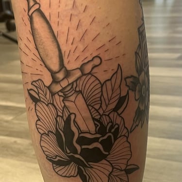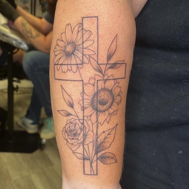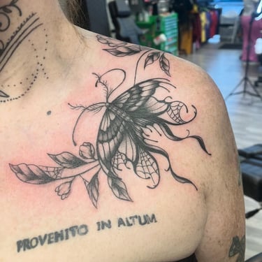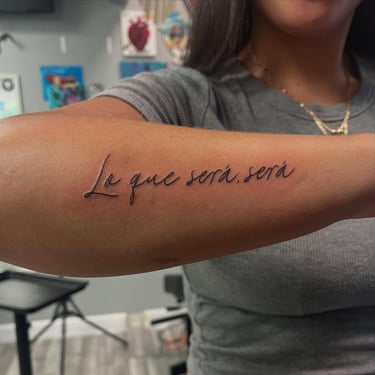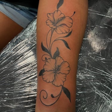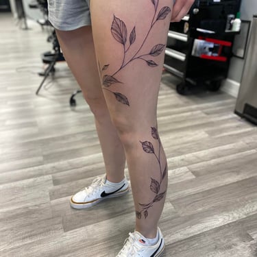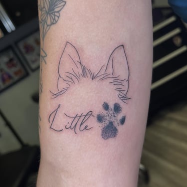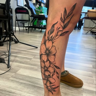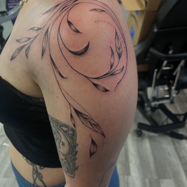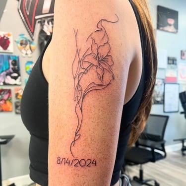Her style ranges from clean fine-line and delicate script to bold black-and-grey, floral work, and modern illustrative designs. Kay approaches every piece with intention, taking the time to understand her clients’ ideas and transforming them into custom artwork tailored to their personality and vision.