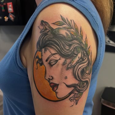 Liz is a dynamic tattoo artist whose bold creativity and technical skill make her stand out as one of the most distinctive voices at Ink Station Tattoo. Known online as Such a Scream Tattoos, her work blends striking linework, expressive detail, and a fearless artistic style that resonates deeply with her clients.